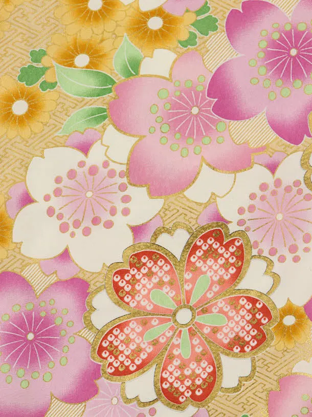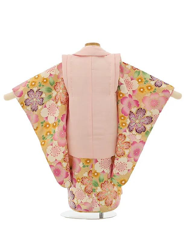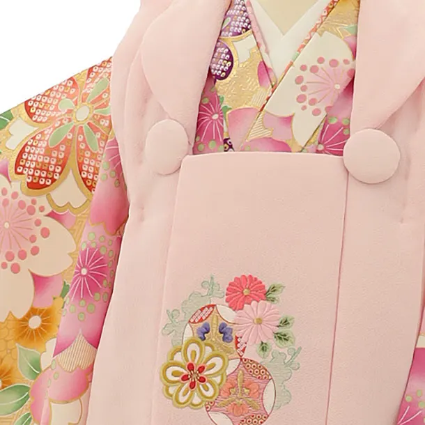 七五三レンタル(3歳女児被布)4095薄ピンク刺繍菊xベージュ地桜