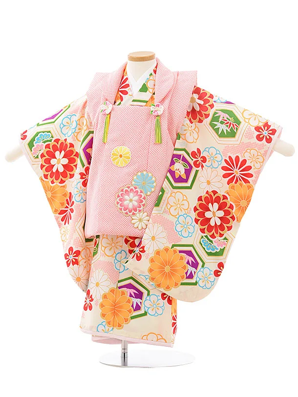 七五三レンタル(3歳女児被布)4099ピンク菊梅x白ピンクまり梅