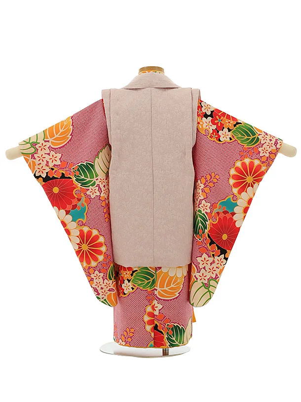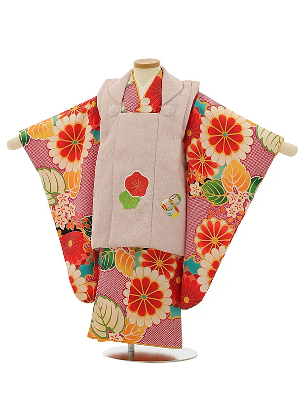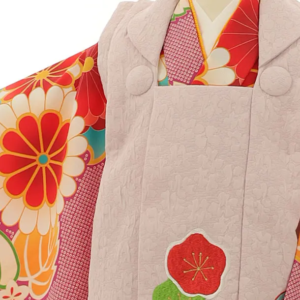 七五三レンタル(3歳女児被布)4111うすパープル刺繍梅xパープル疋田柄菊桐