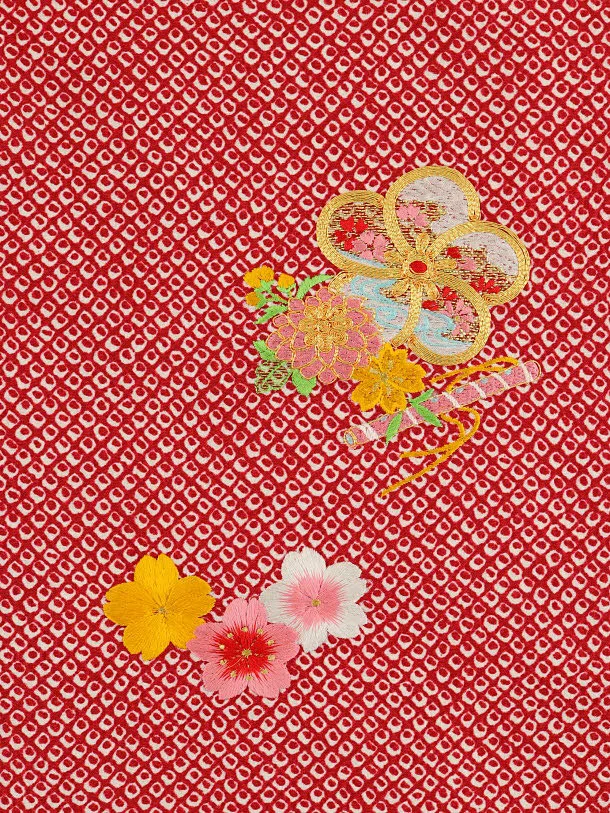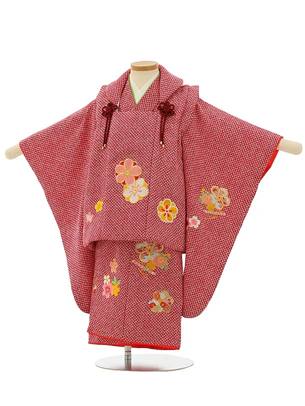 七五三レンタル(2歳女児被布)4118赤地疋田調刺繍梅桜
