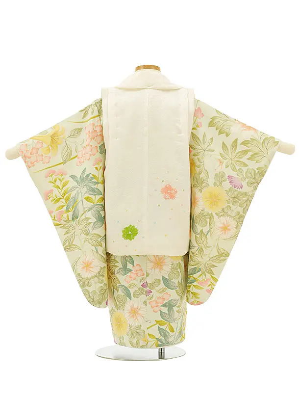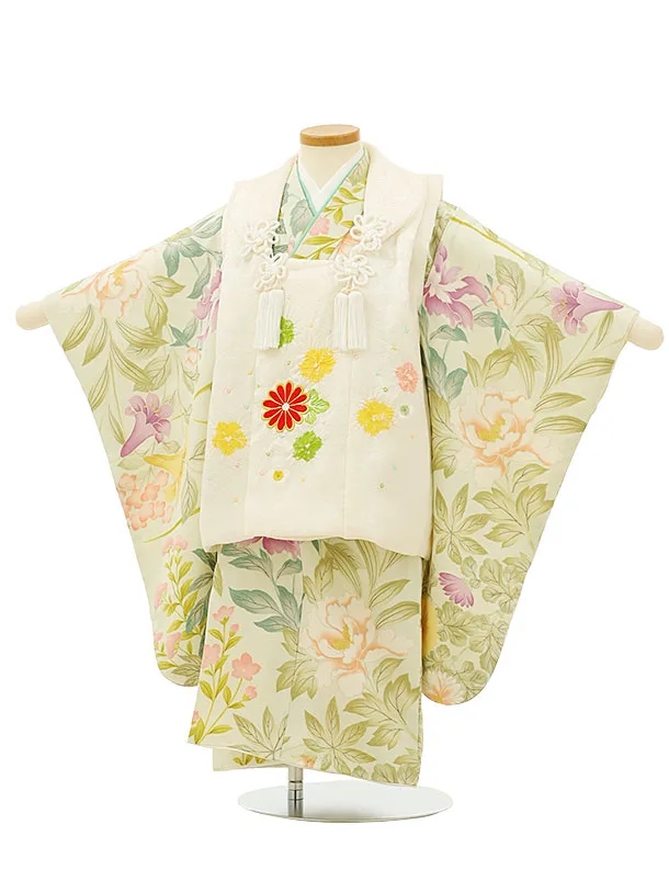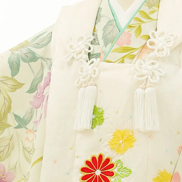 七五三(3歳女児被布)【正絹】4123白刺繍菊xパステルグリーン四季花