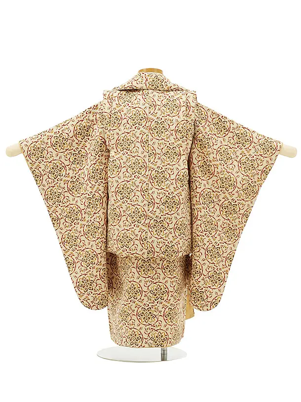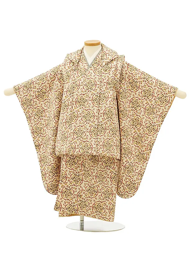 七五三(3歳女児被布)【正絹】4128アイボリー地変わり柄