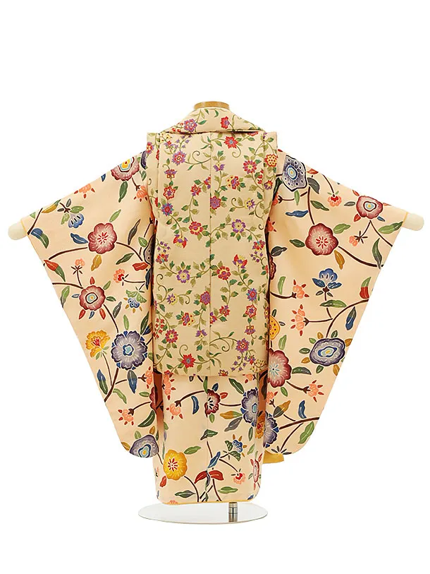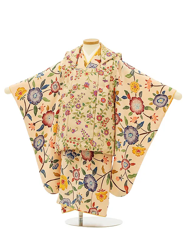 七五三(3歳女児被布)【正絹】4130サーモンピンク小花x花