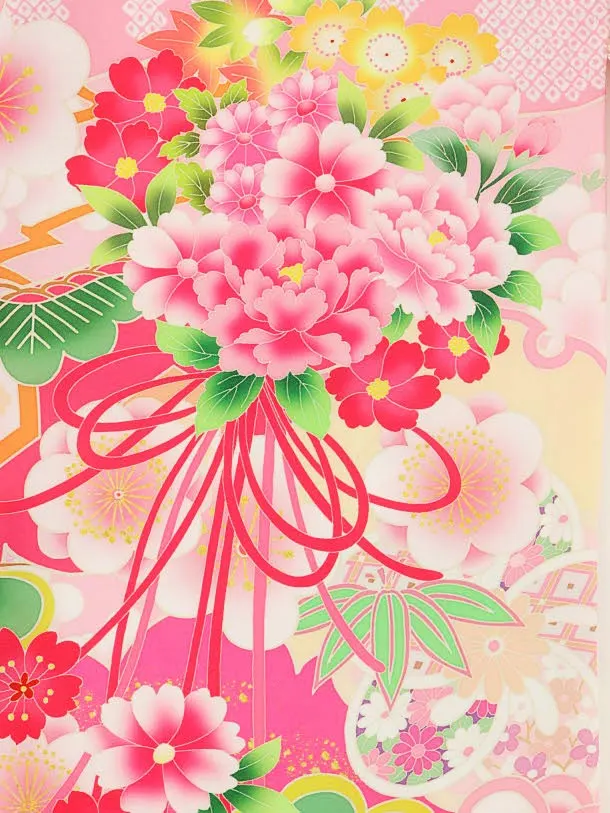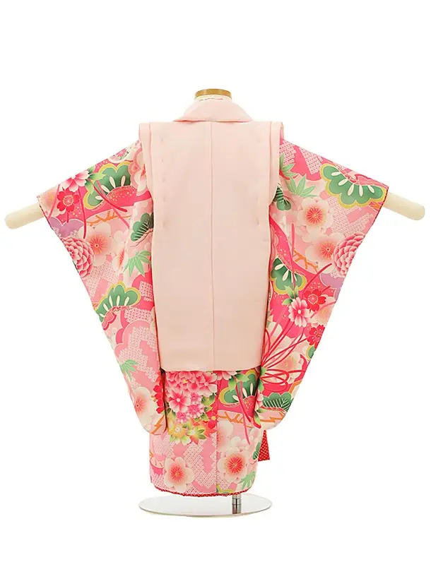 七五三レンタル(3歳女児被布)4134式部浪漫ピンク刺繍桜xピンク薬玉