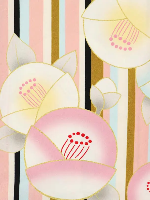 七五三レンタル(3歳女児被布)4137ピンク刺繍ブーケxピンク茶ストライプ椿