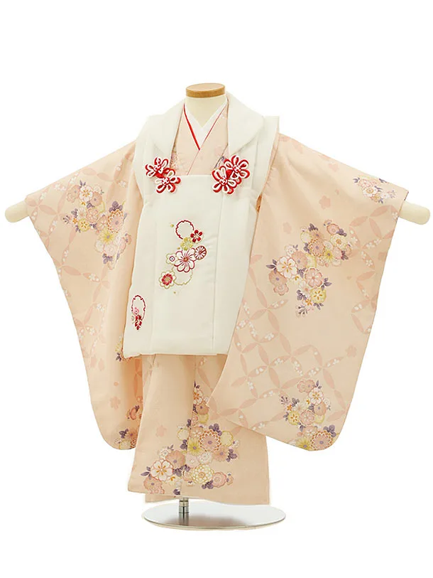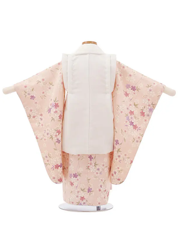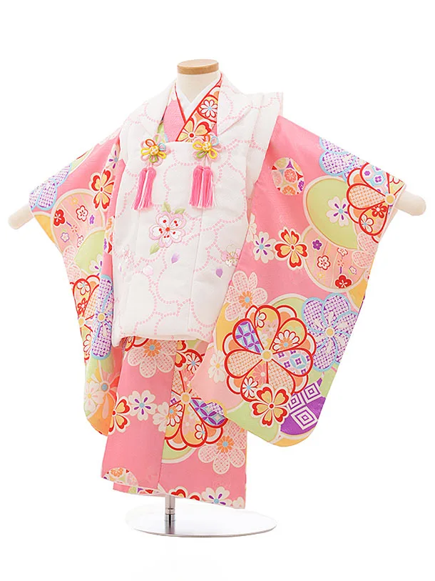 七五三レンタル(3歳女児被布)4150白地刺繍雪輪xうすピンク桜