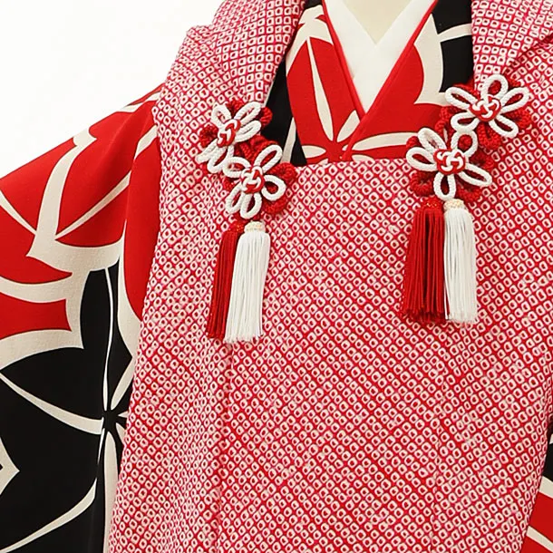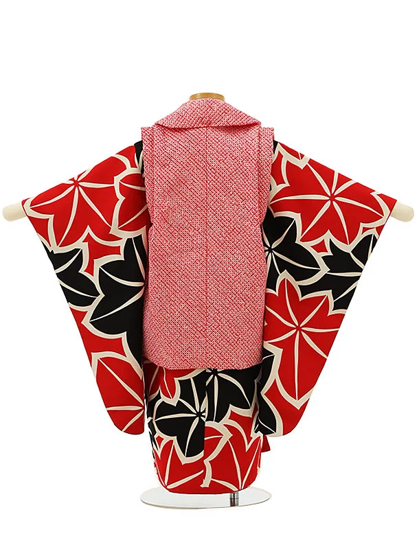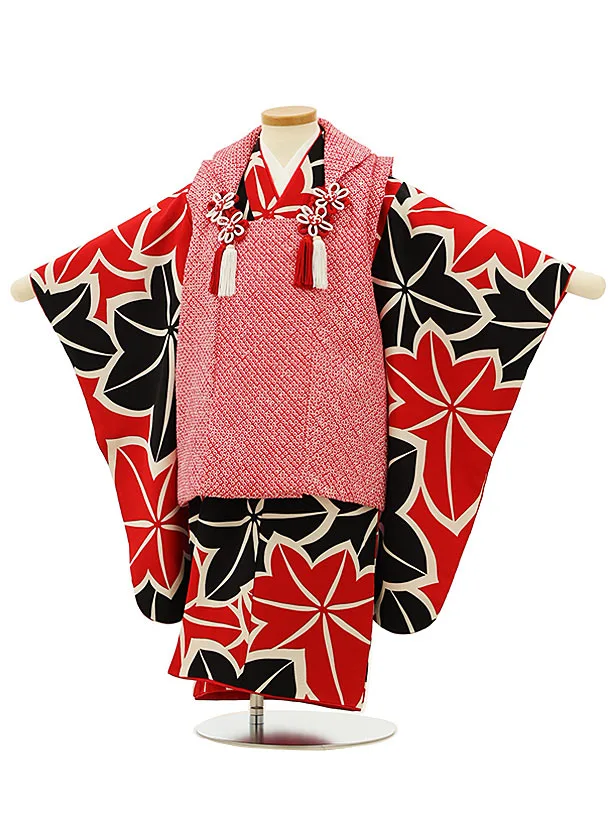 七五三レンタル(3歳女児被布)【正絹】4165赤絞りx赤黒もみじ