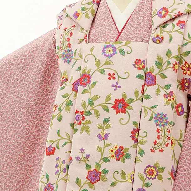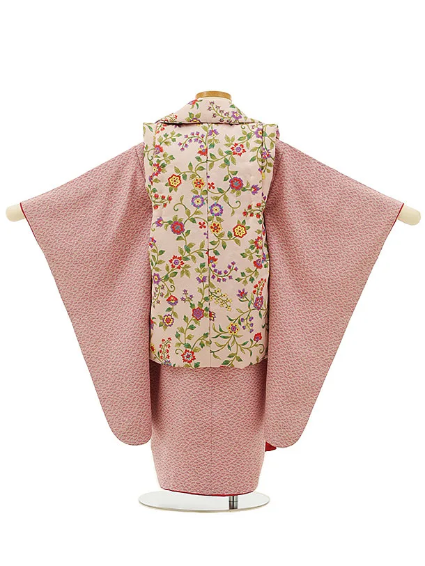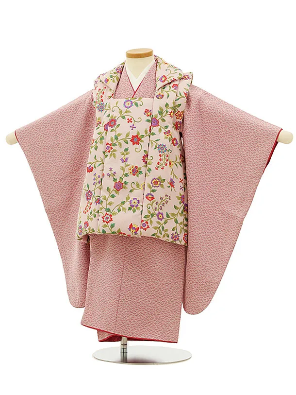 七五三レンタル(3歳女児被布)【正絹】4166ピンク花xパープル小紋
