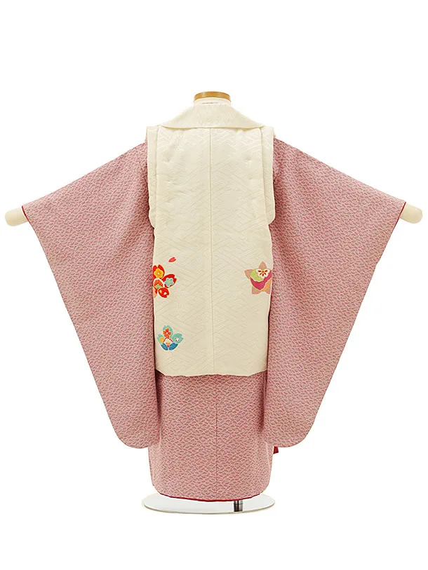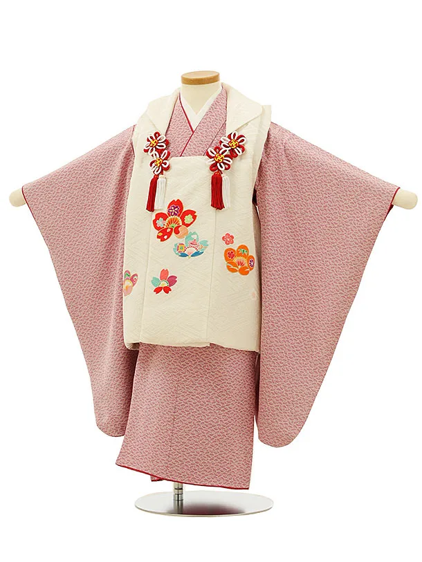 七五三レンタル(3歳女児被布)【正絹】4167白桜梅xパープル小紋