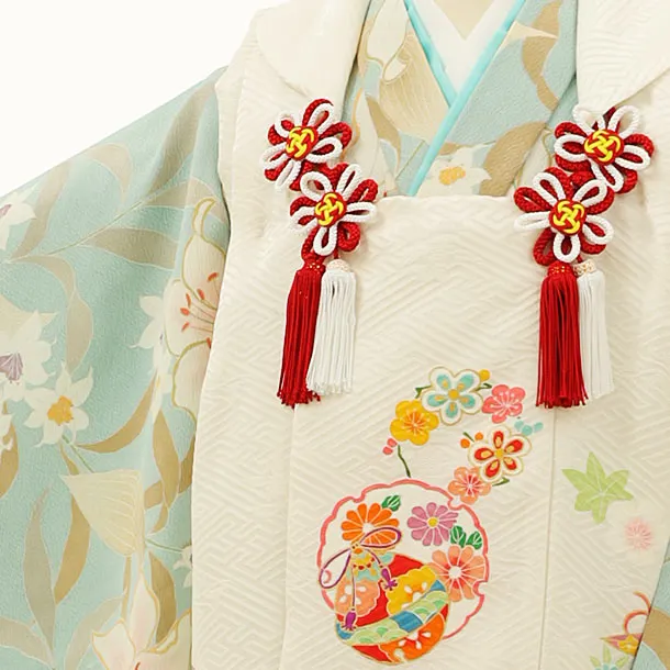 七五三レンタル(3歳女児被布)【正絹】4169白雪輪鈴xミントグリーン百合