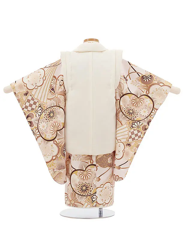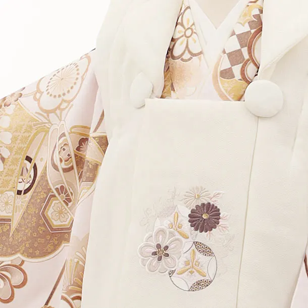 七五三レンタル(3歳女児被布)4174オフホワイト刺繍梅菊xうすピンク古典