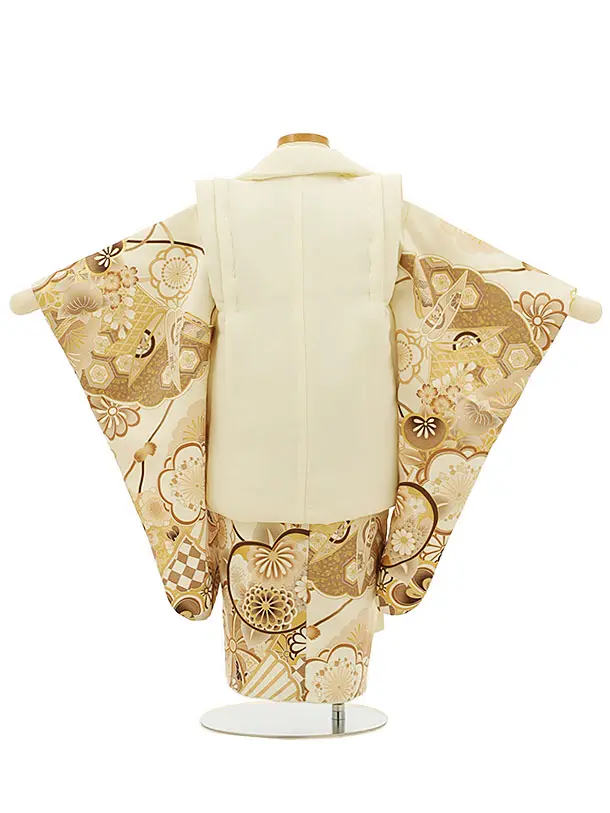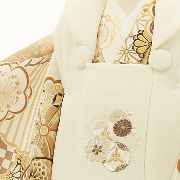 七五三レンタル(3歳女児被布)4176オフホワイト刺繍梅菊xオフホワイト古典