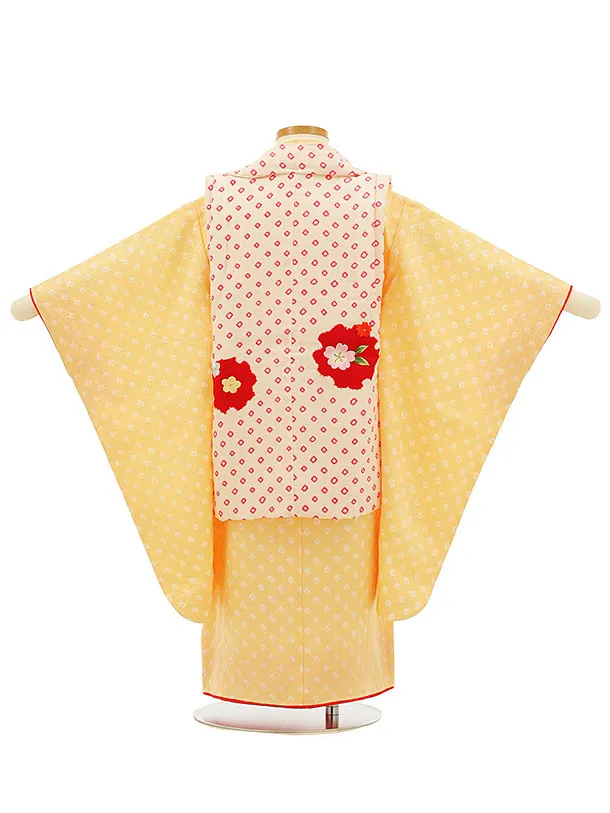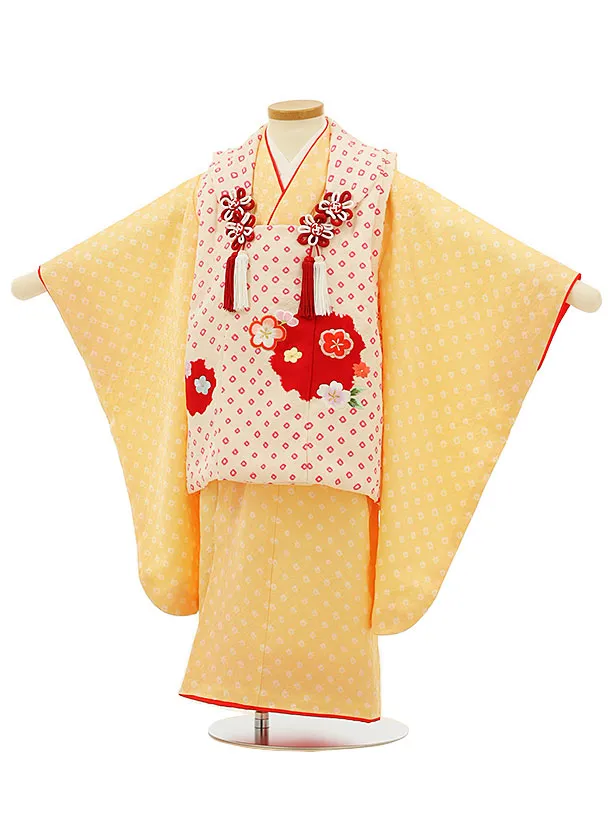 七五三レンタル(3歳女児被布)【高級正絹】4178白雪輪xうすオレンジ絞り