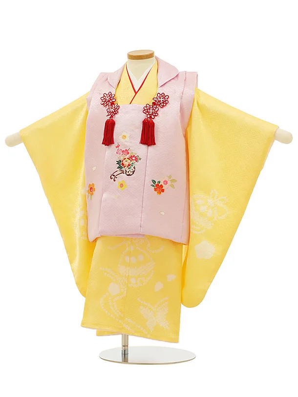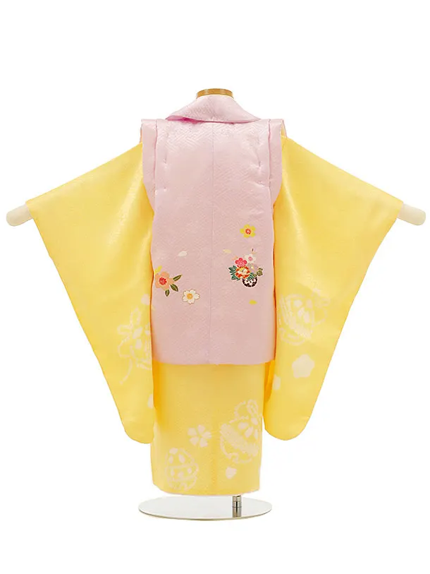 七五三レンタル(3歳女児被布)【正絹】4180うす紫花車x黄色鈴と蝶