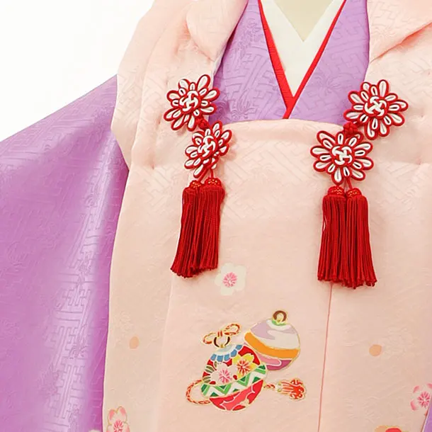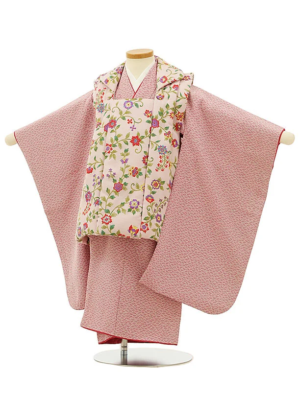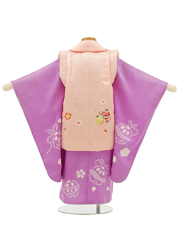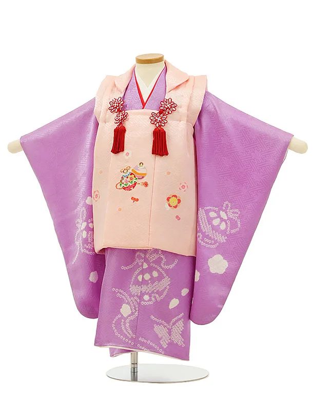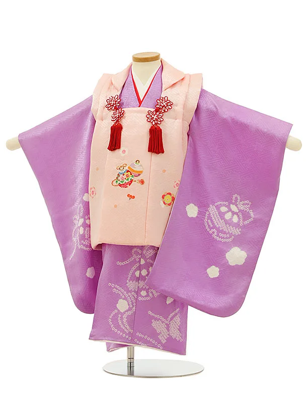 七五三レンタル(3歳女児被布)【正絹】4182うすピンク鈴梅xパープル鈴と蝶