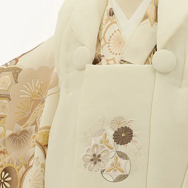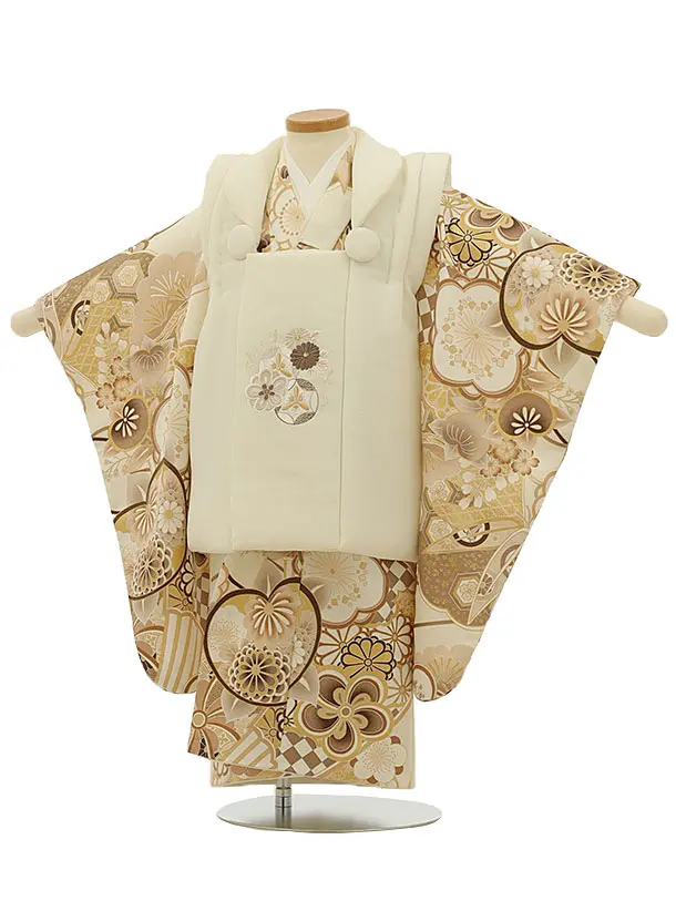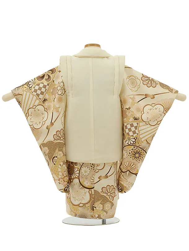 七五三レンタル(3歳女児被布)4186オフホワイト刺繍梅菊xオフホワイト古典