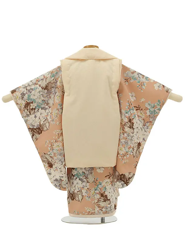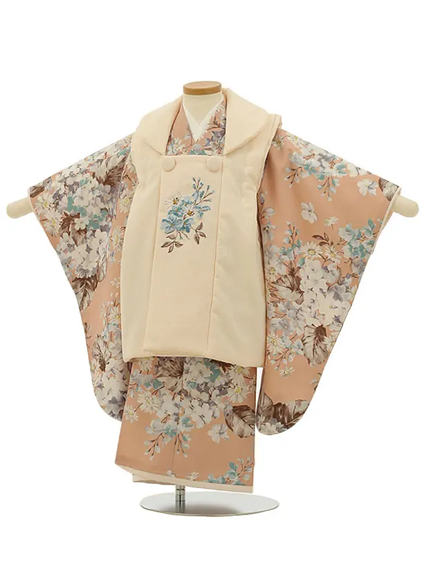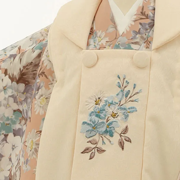 七五三(3歳)4189SUGARKEIクリーム刺繍花xオレンジピンクに藤