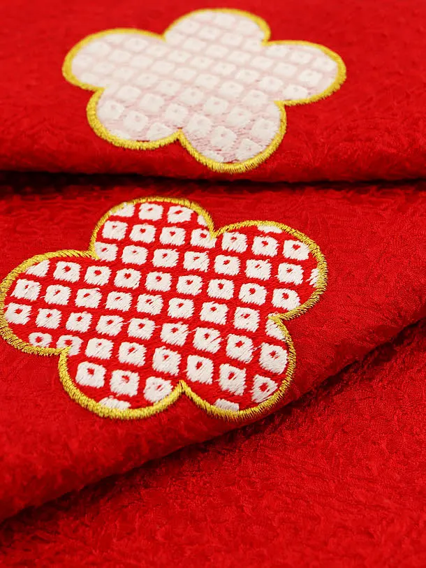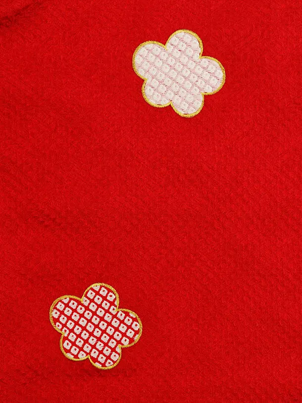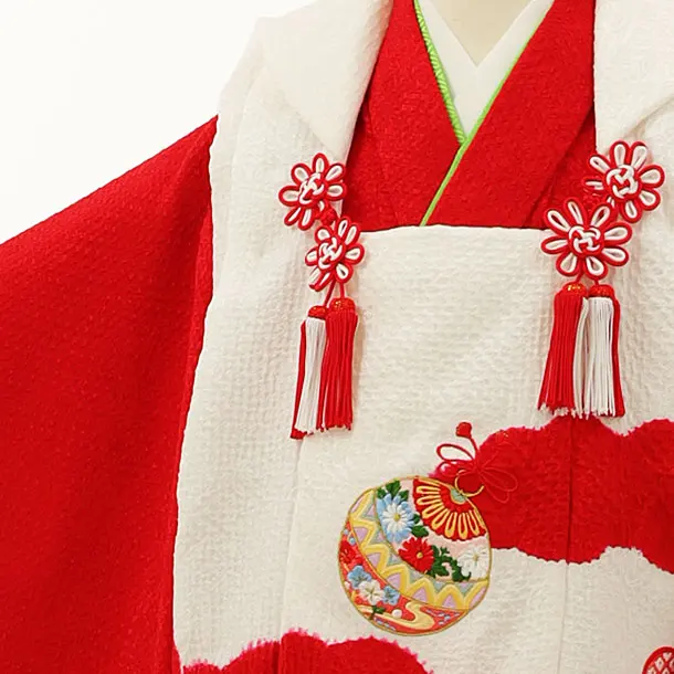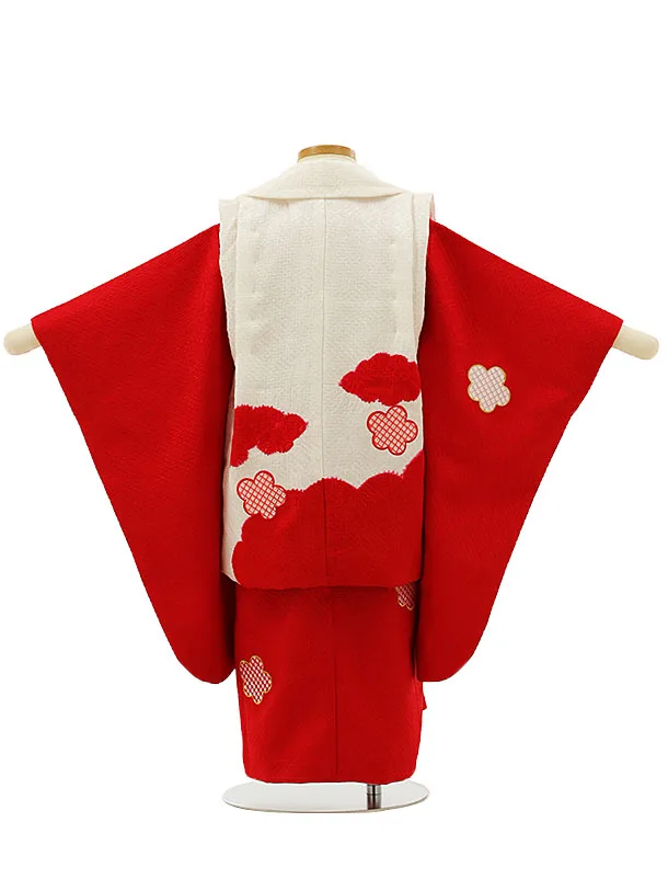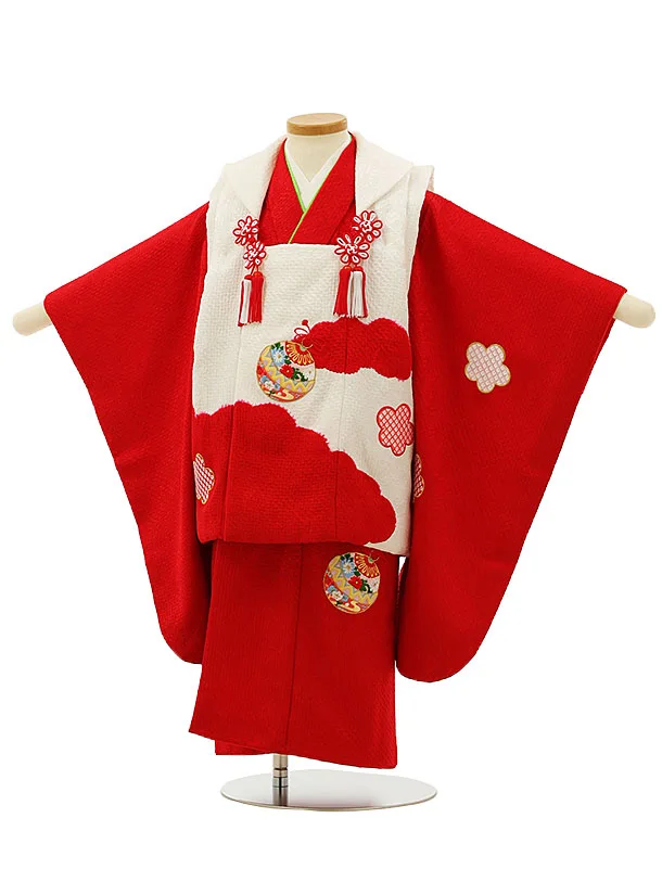 七五三レンタル(3歳女児被布)【正絹】4190白地雲取り刺繍まりx赤地梅