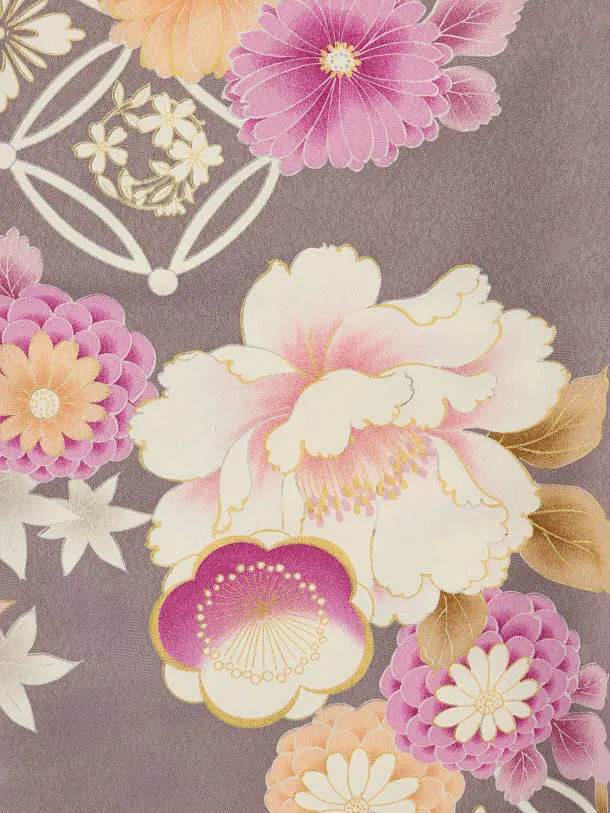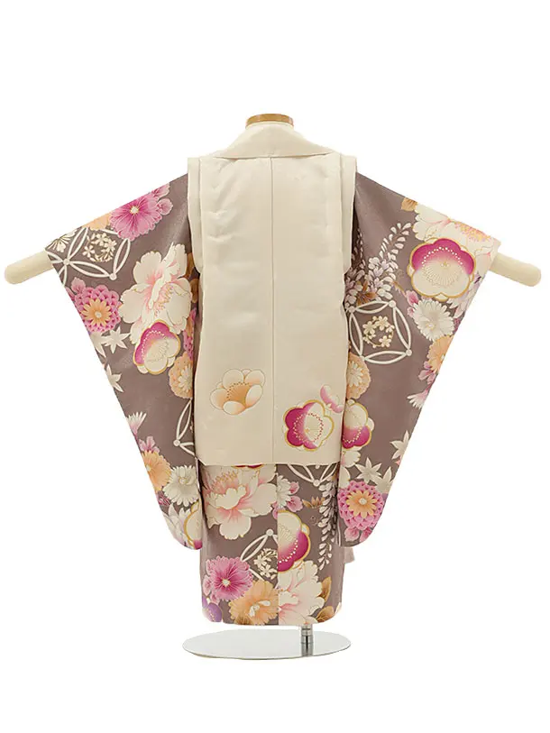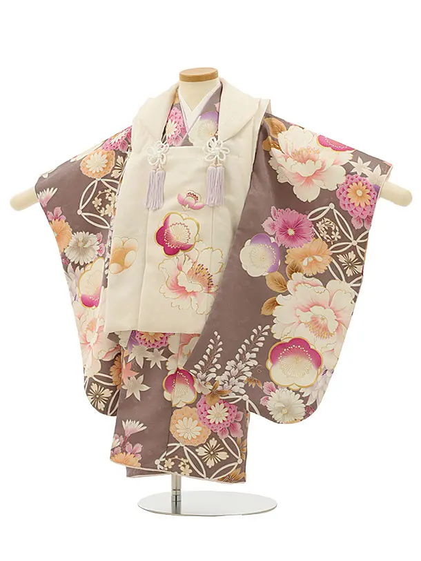 七五三(3歳被布)4194オフホワイト梅牡丹xパープルグレー梅牡丹菊
