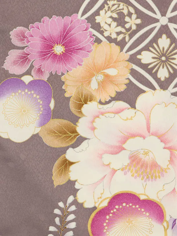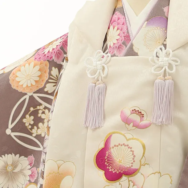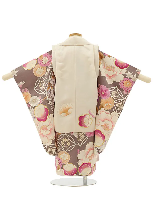 七五三(3歳被布)4195オフホワイト梅牡丹xパープルグレー梅牡丹菊