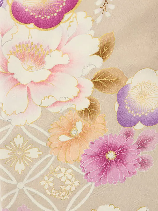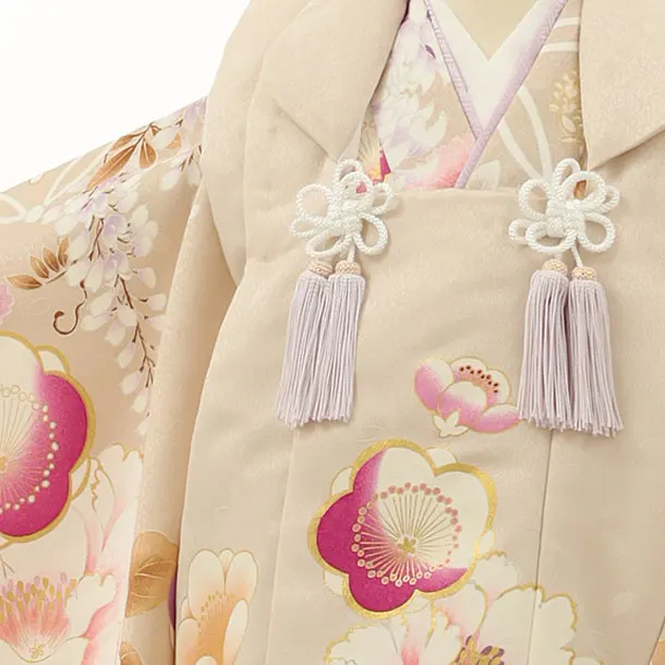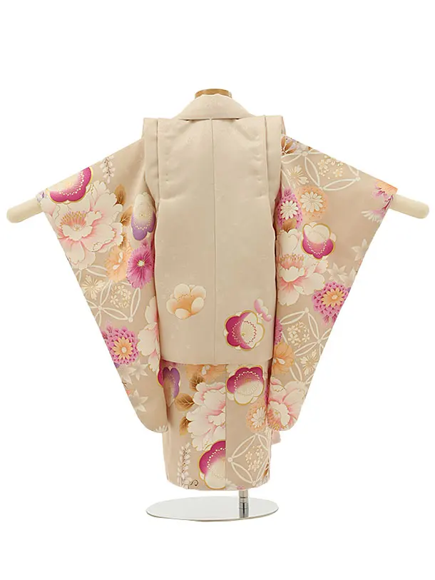 七五三(3歳被布)4200ベージュ梅牡丹xベージュ梅牡丹菊