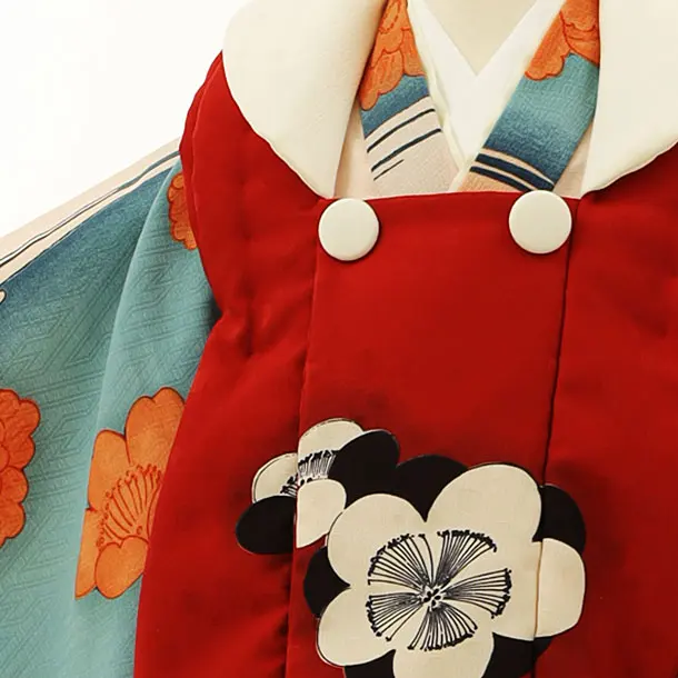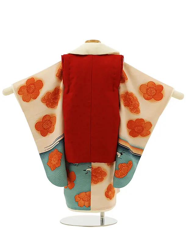七五三(3歳女児被布)4205モダンアンテナ赤地梅x空色梅鶴