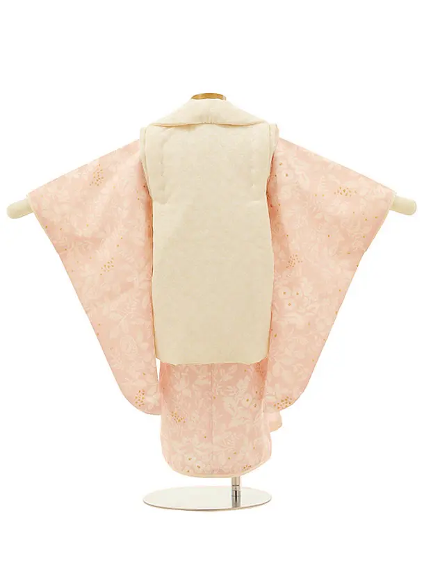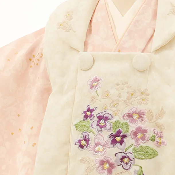 七五三(3歳女児)4211Kamishibaiアイボリー刺繍ブーケxピンク