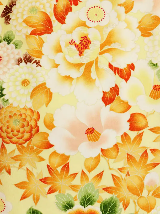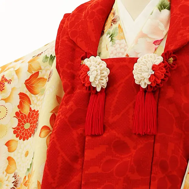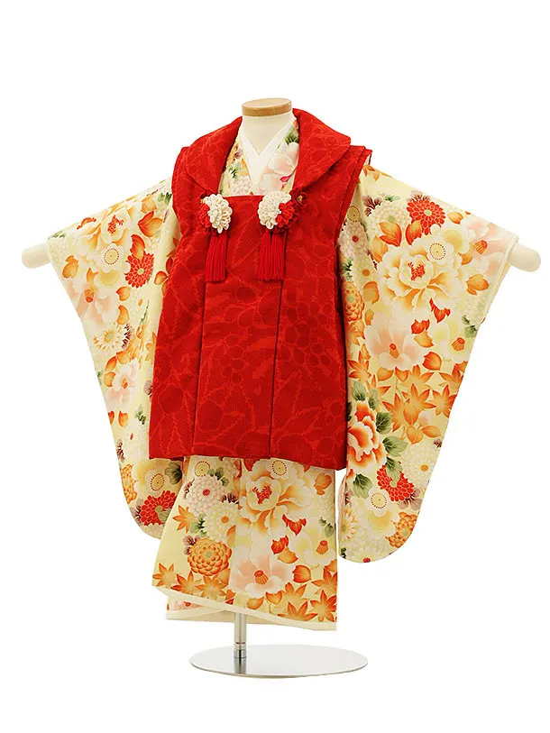 七五三レンタル(3歳女児被布)4212華徒然 赤x黄色四季花