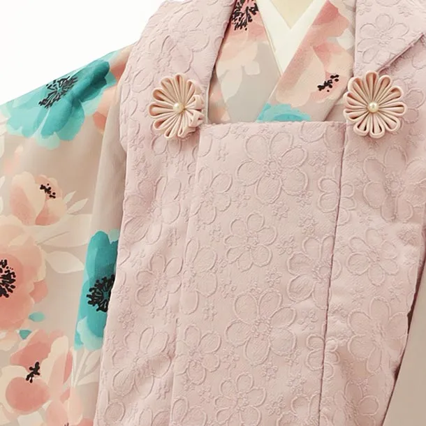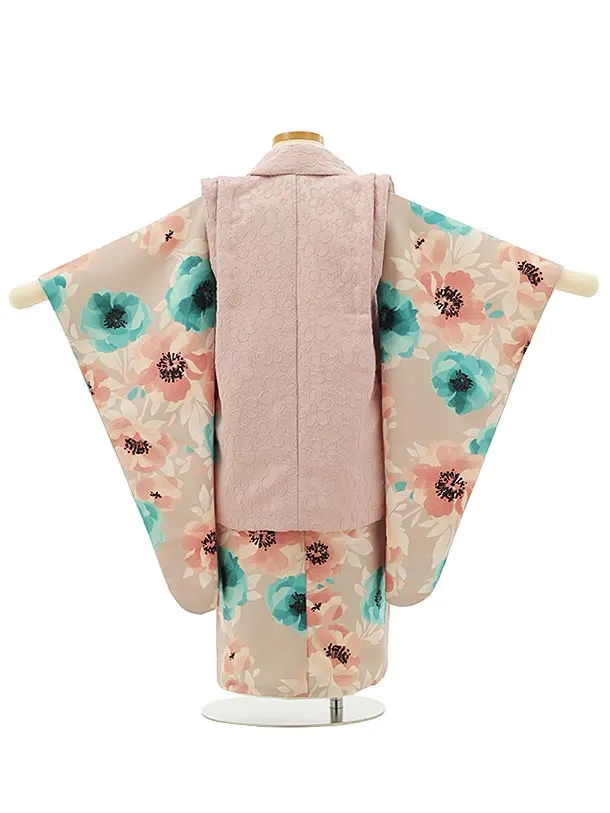 七五三レンタル(3歳女児被布)4224花わらべ 紅藤色×グレージュ ポピー