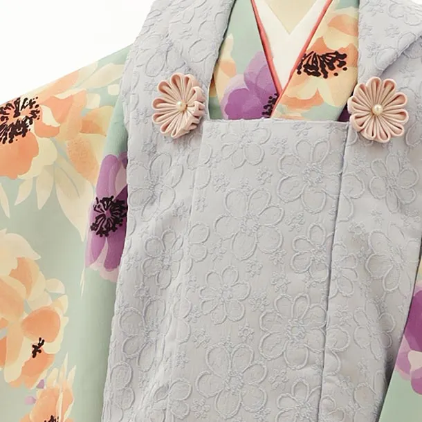 七五三レンタル(3歳女児被布)4225花わらべペールブルー×ペールグリーンポピー