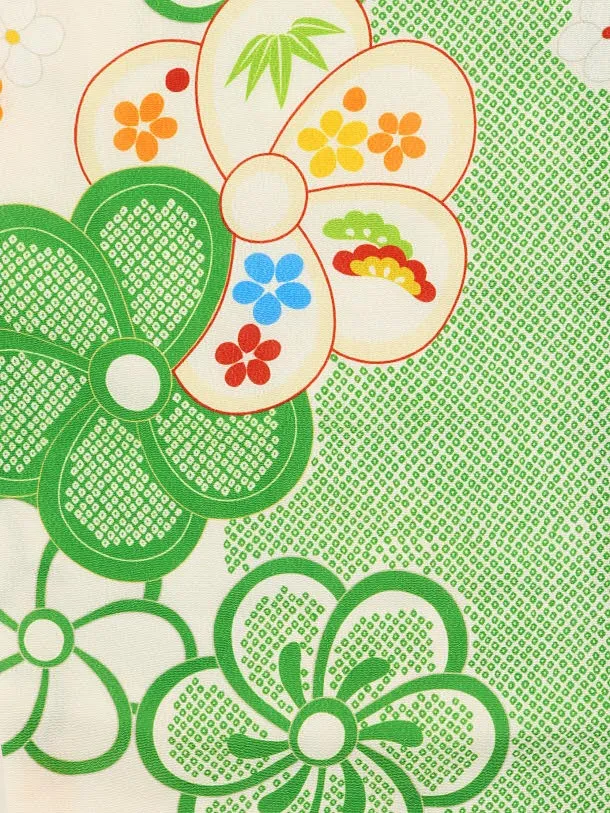 七五三(3歳女児被布)4231オフホワイト刺繍菊梅×緑ねじり梅