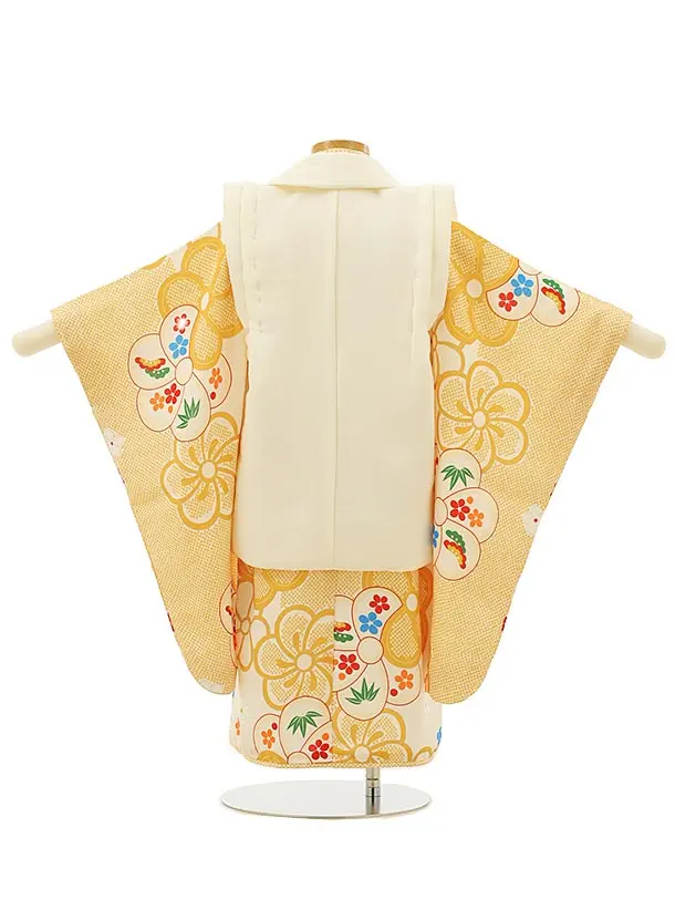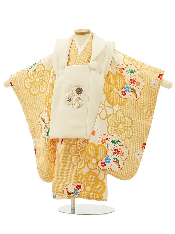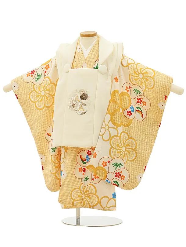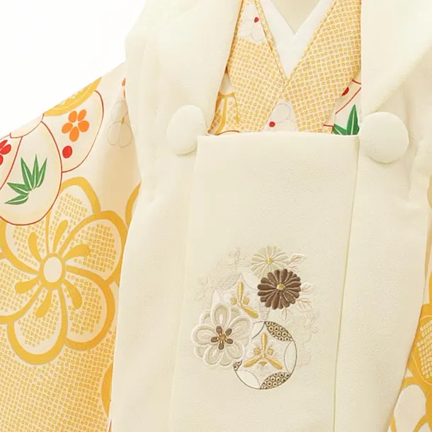 七五三レンタル(3歳女児被布)4232オフホワイト刺繍菊梅×からしねじり梅
