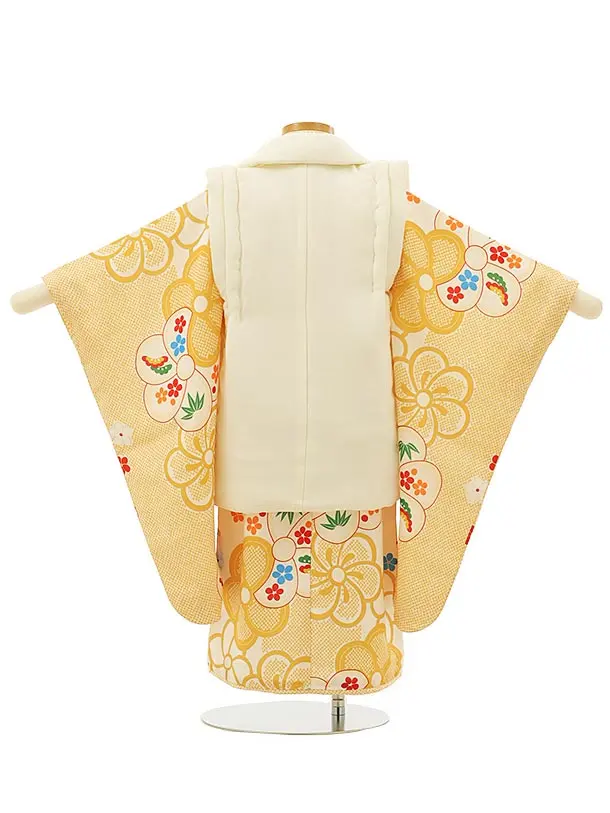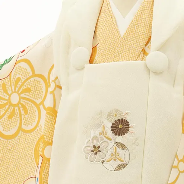 七五三レンタル(3歳女児被布)4233オフホワイト刺繍菊梅×からしねじり梅