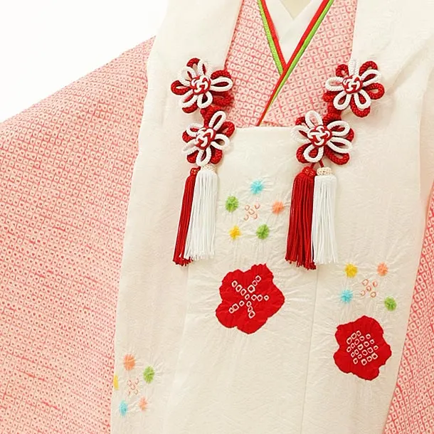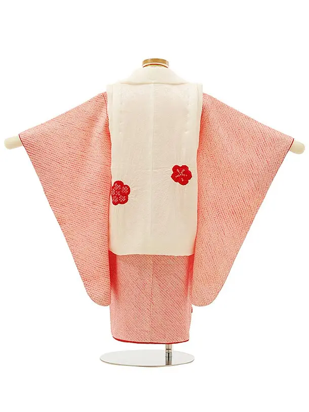 七五三レンタル(3歳女児被布)4236【正絹】 白地 梅×ピンク 絞り