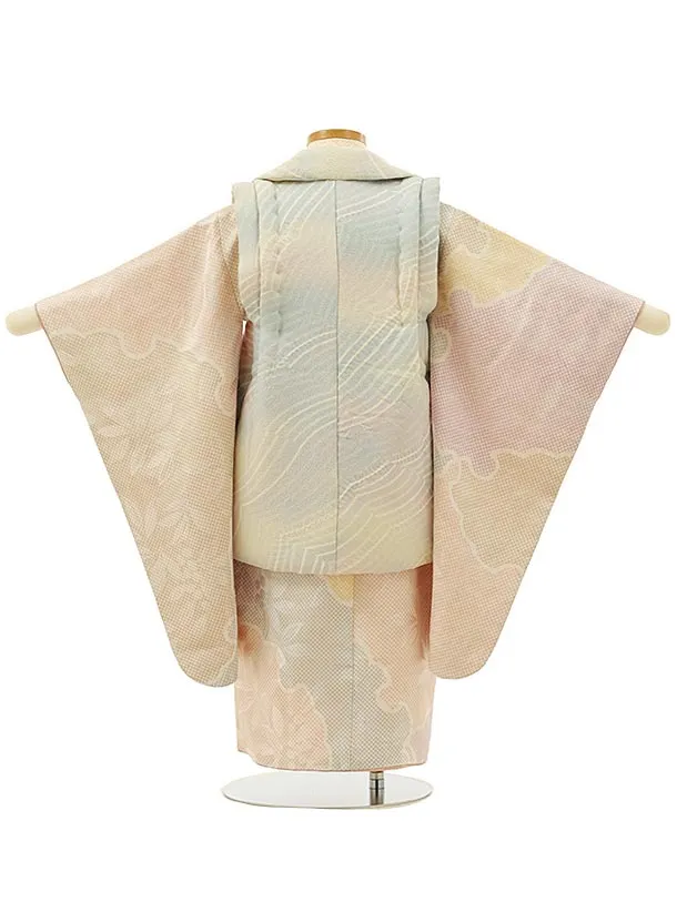 七五三(3歳女児被布)4239【高級正絹】おぼろ染めぼかし×ピンク 雪輪ドット