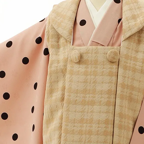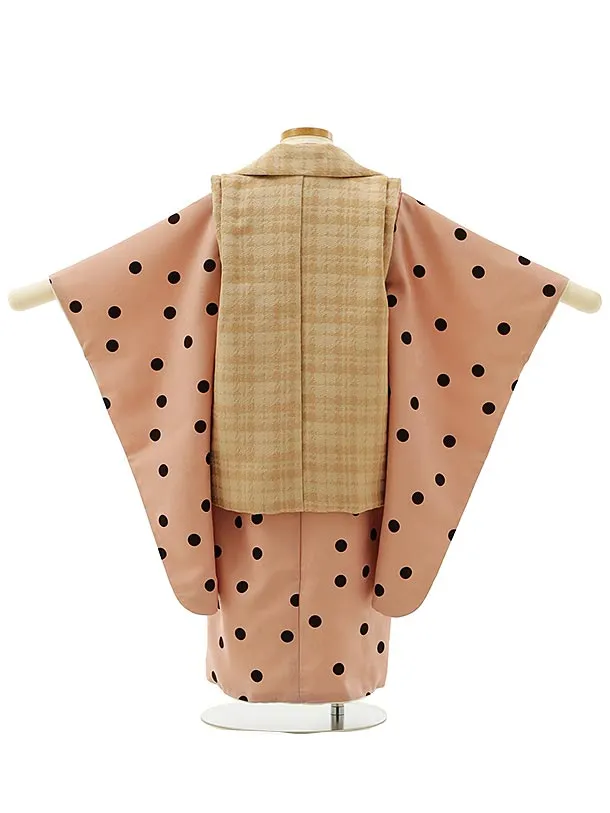 七五三レンタル(3歳女児被布)4254ベージュチェック×ピンクドット