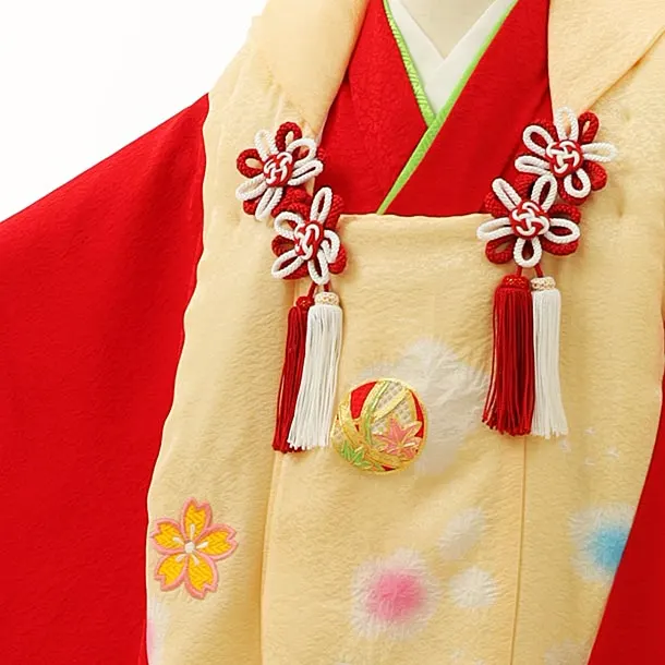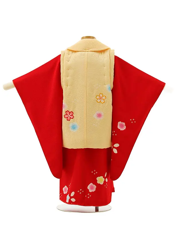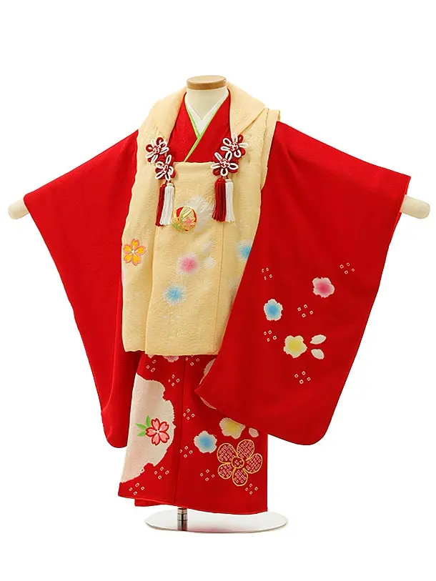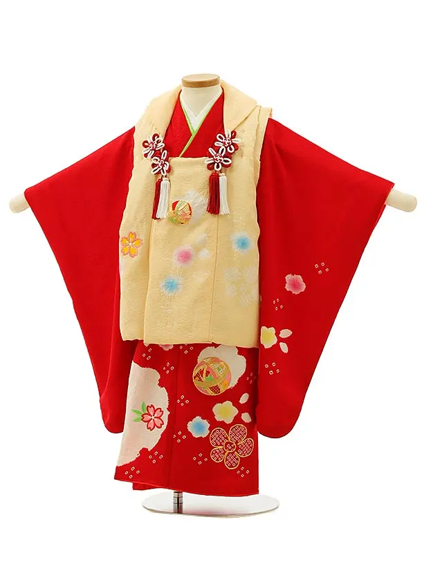 七五三レンタル(3歳女児被布)4257【正絹】うすオレンジ×赤刺繍まり梅桜