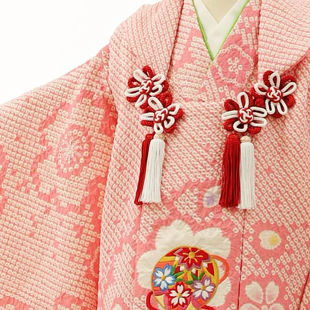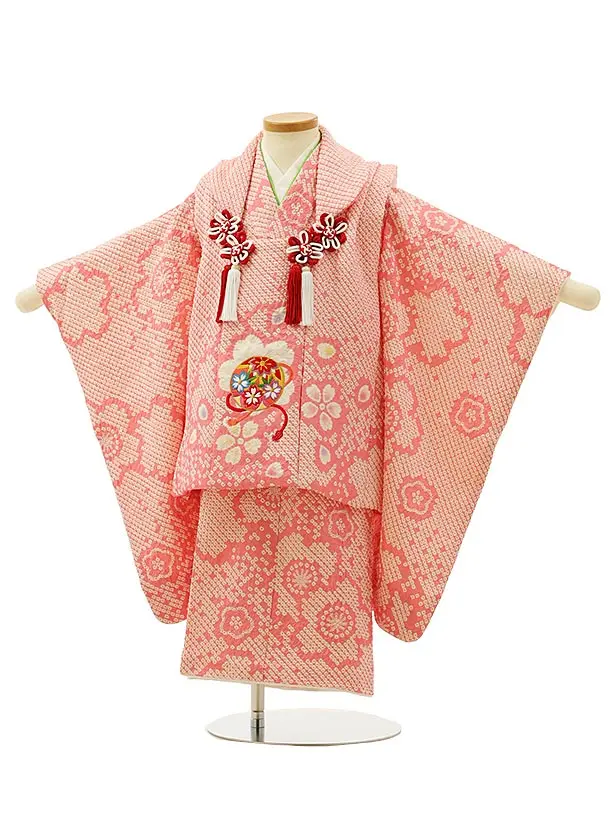 七五三レンタル(3歳女児被布)4260【高級正絹】ピンク絞り刺繍まり