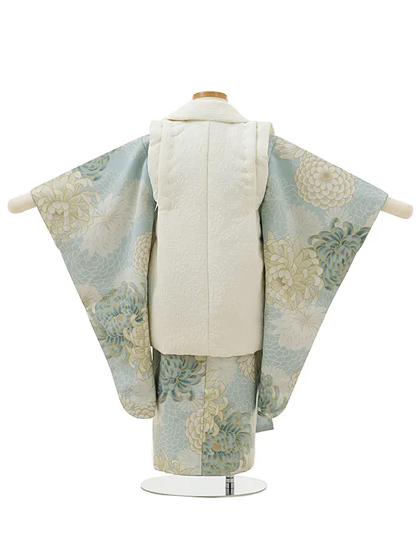 七五三レンタル(3歳女児被布)4290オフホワイト×ブルーグレー菊