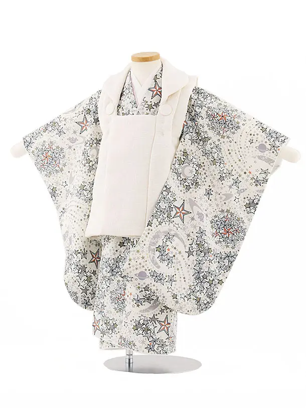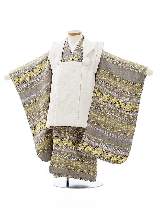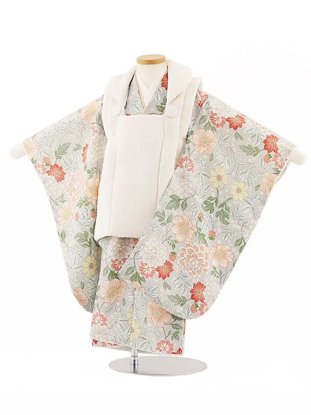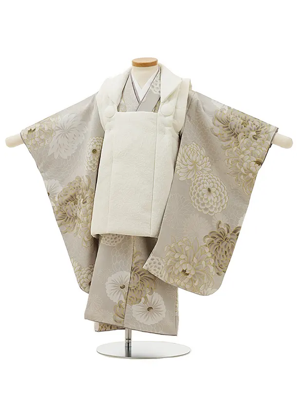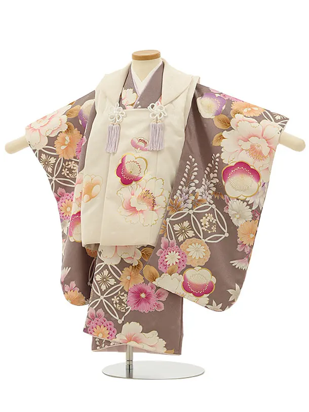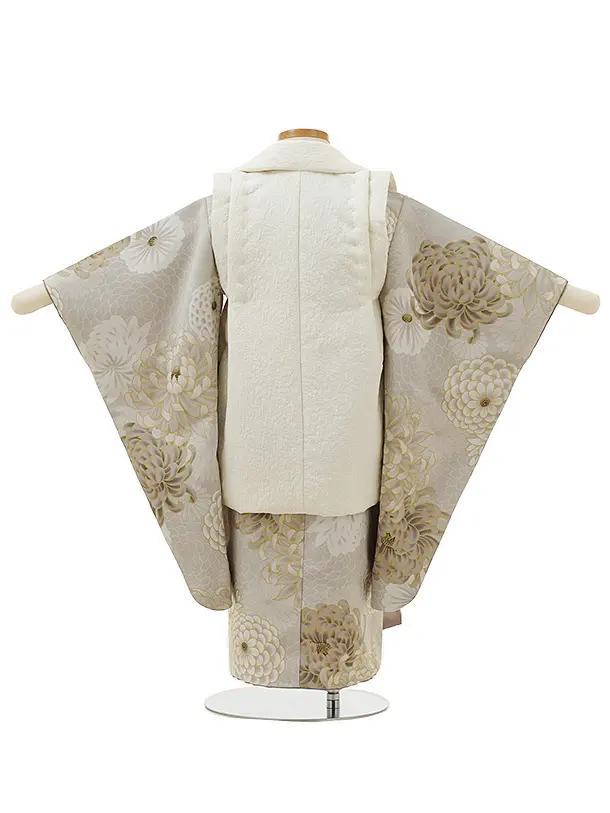 七五三レンタル(3歳女児被布)4292オフホワイト×グレージュ菊