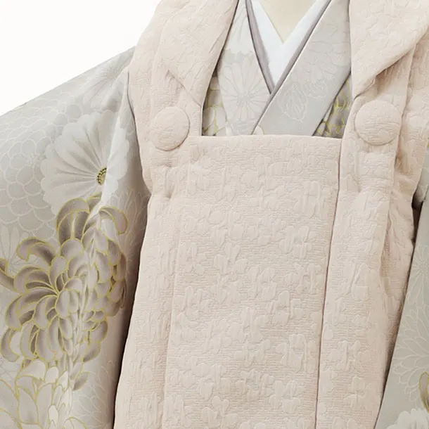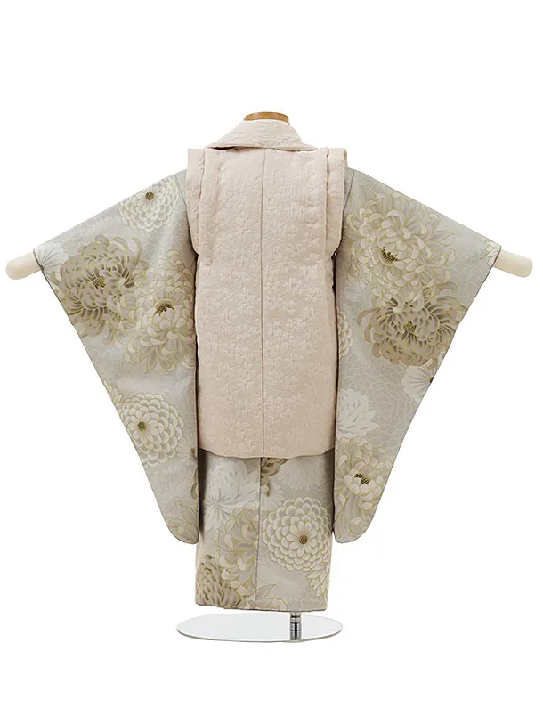 七五三レンタル(3歳女児被布)4293ピンクベージュ×グレージュ菊