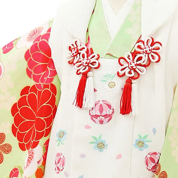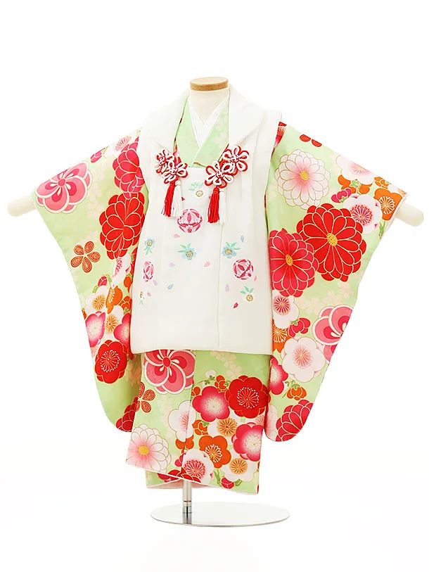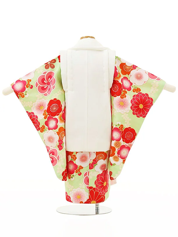 七五三レンタル(3歳女児被布)4301白刺繍鞠xグリーン梅菊