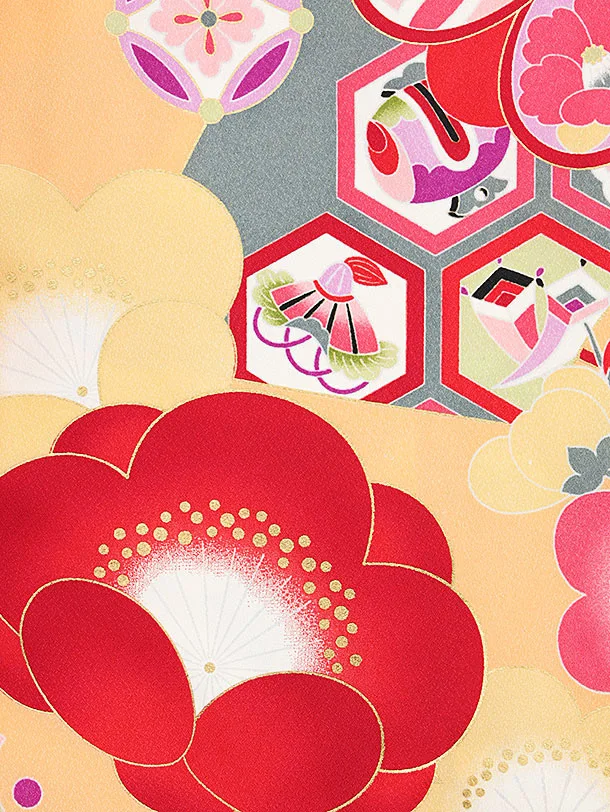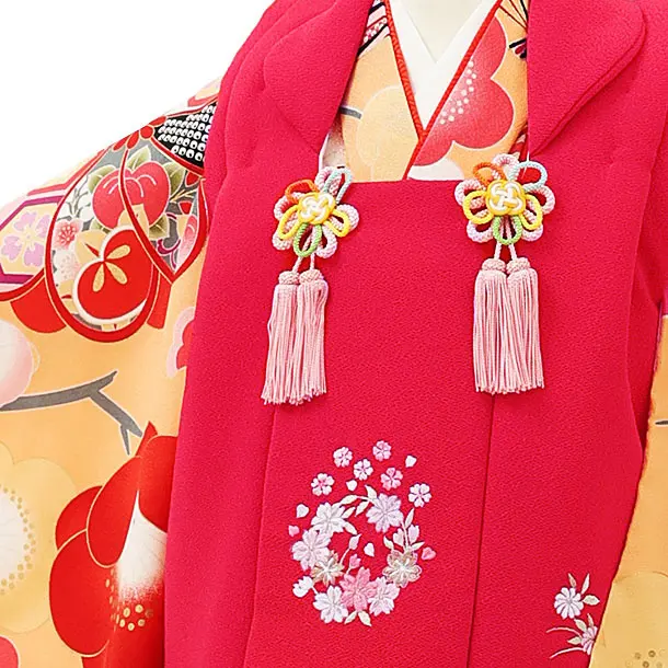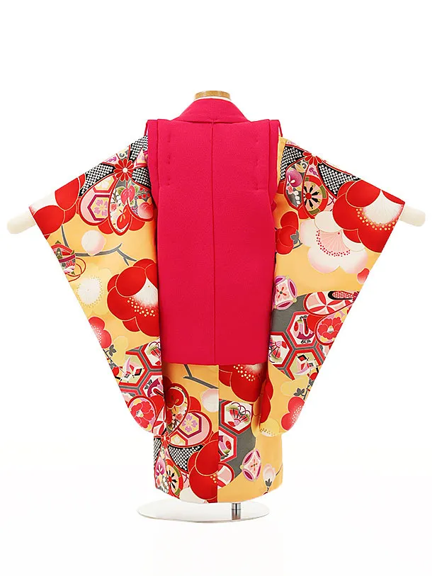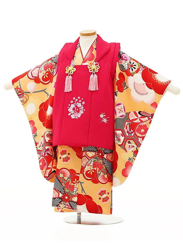 七五三レンタル(3歳女児被布)4303赤刺繍花丸xオレンジ梅