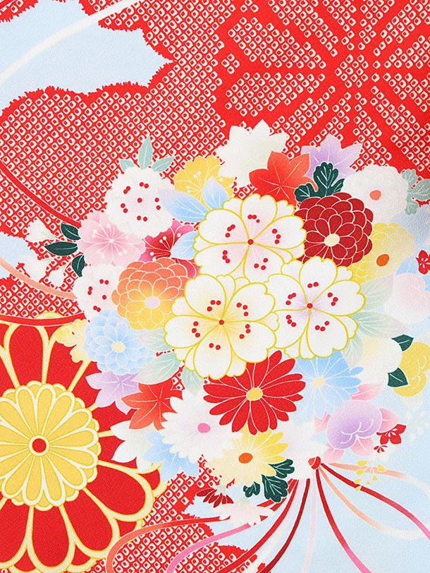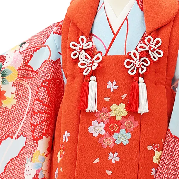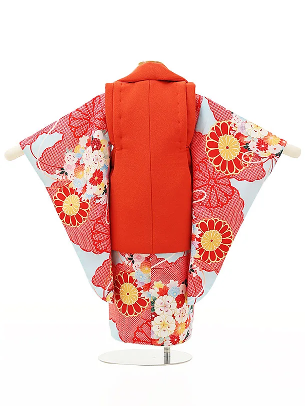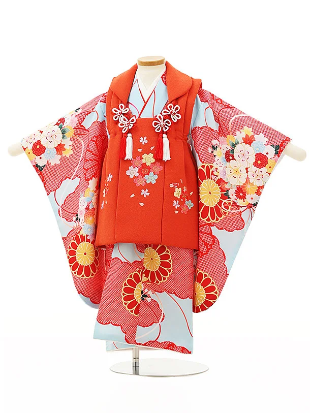 七五三レンタル(3歳女児被布)4309オレンジ刺繍桜x水色薬玉菊