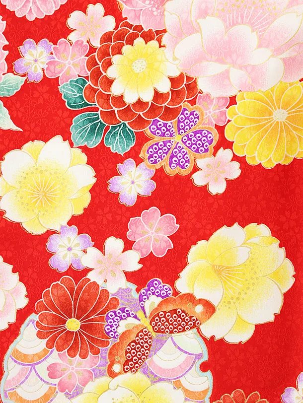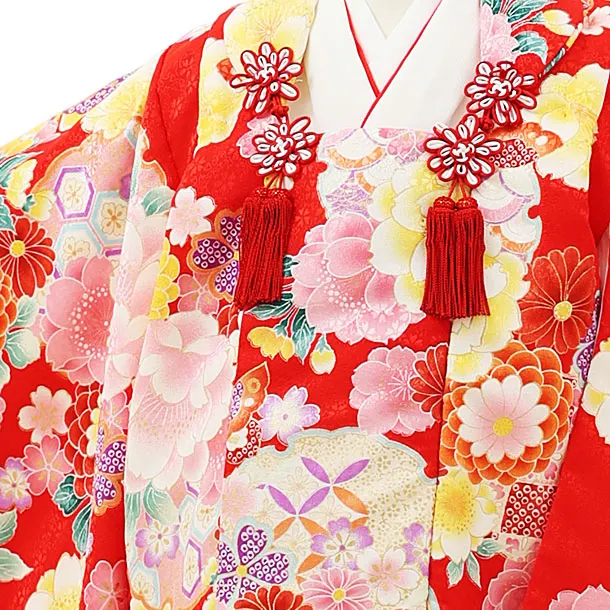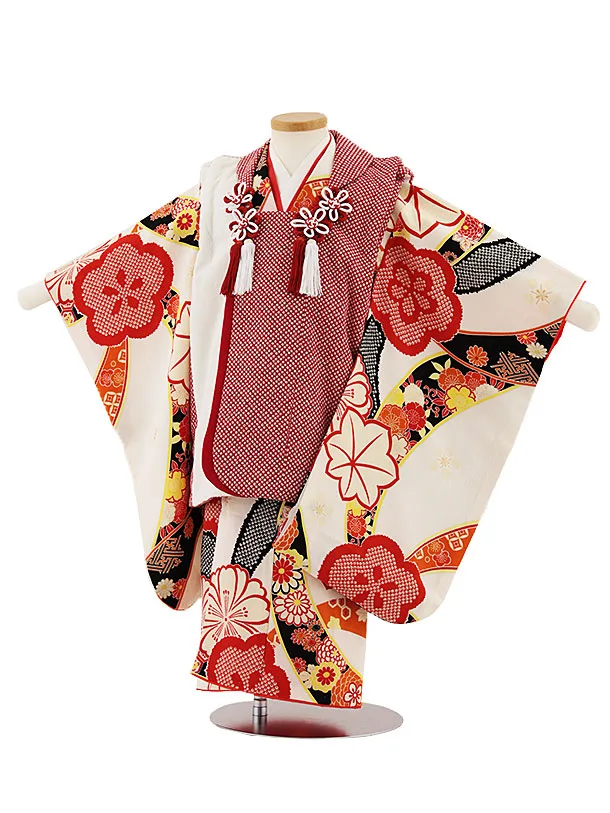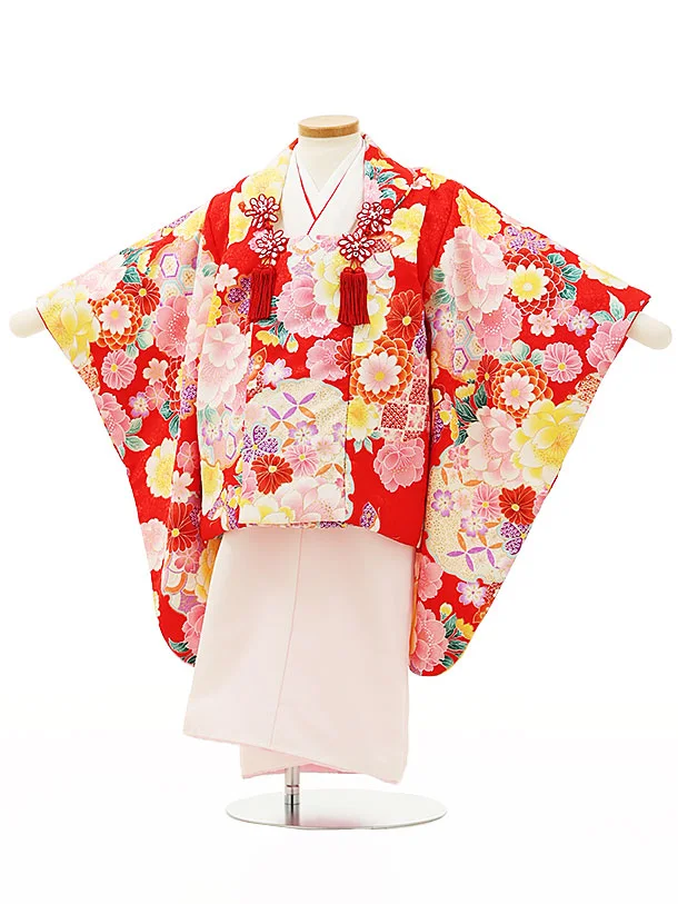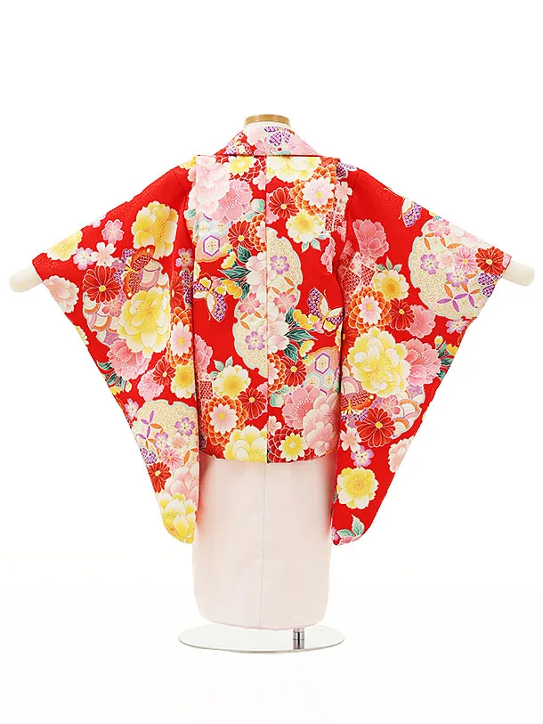 七五三レンタル(3歳女児被布)4313袖付き赤花蝶x白