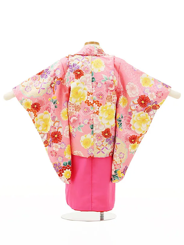 七五三レンタル(3歳女児被布)4315袖付きピンク花蝶xピンク