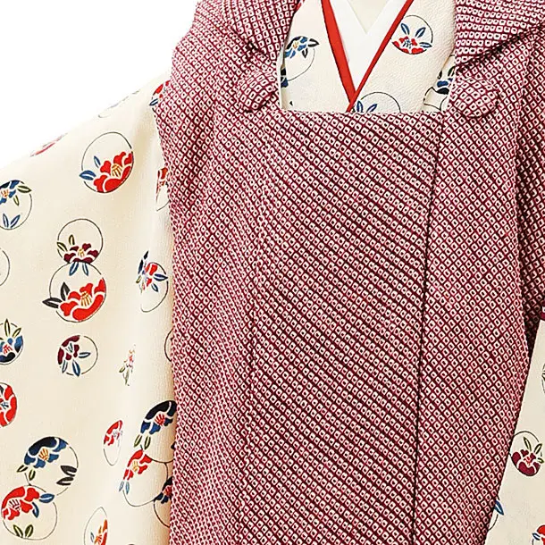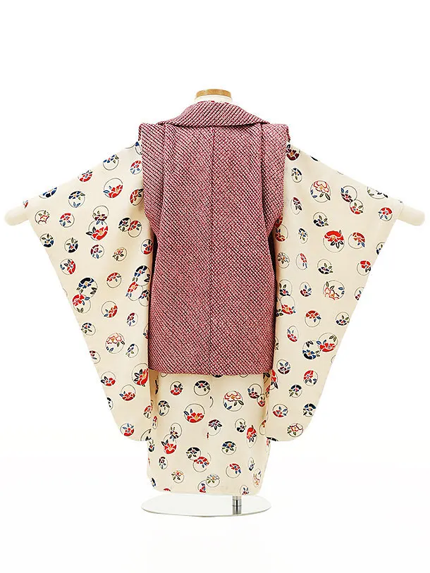 七五三レンタル(3歳女児被布)4316【正絹】ボルドー絞りxアイボリー丸に椿