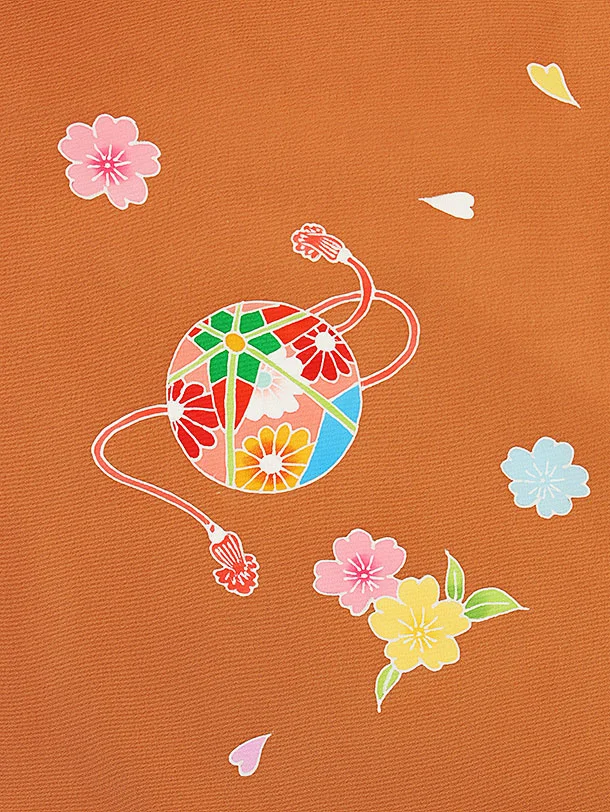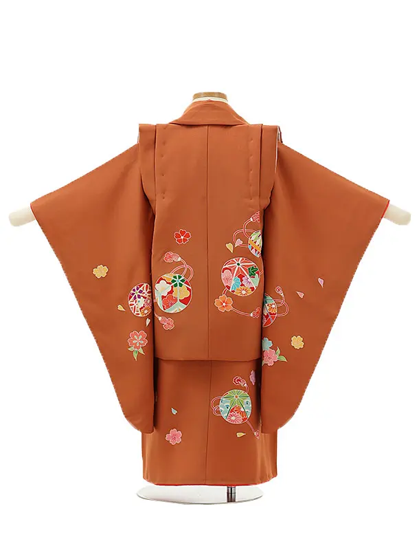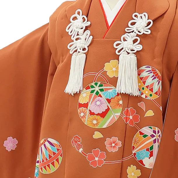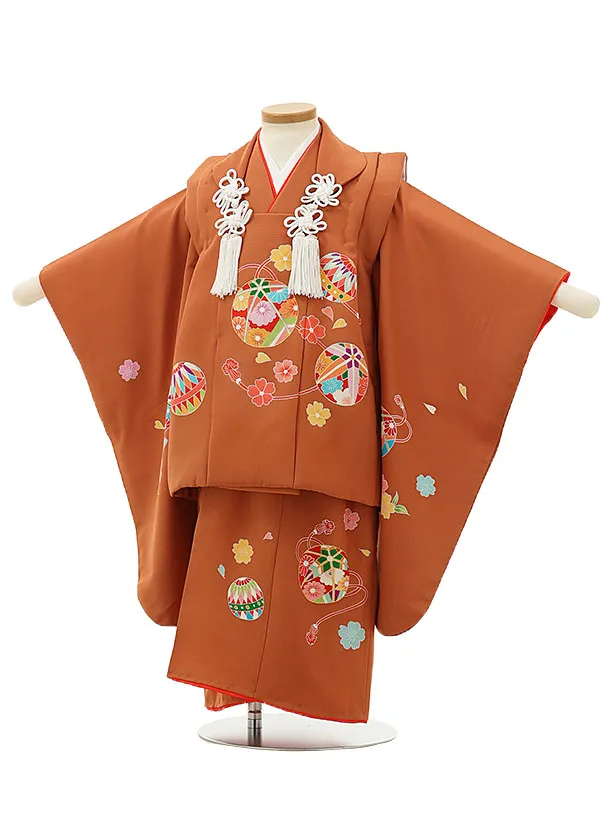 七五三レンタル(3歳女児被布)4328【正絹】柿色鞠
