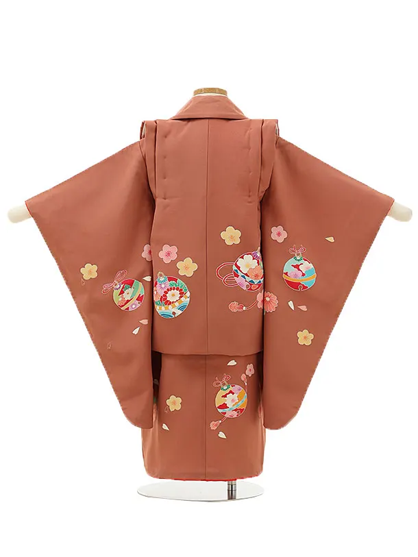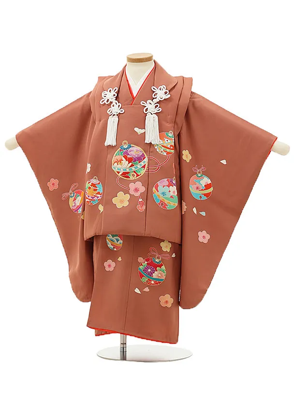 七五三レンタル(3歳女児被布)4329【正絹】雀茶色鈴