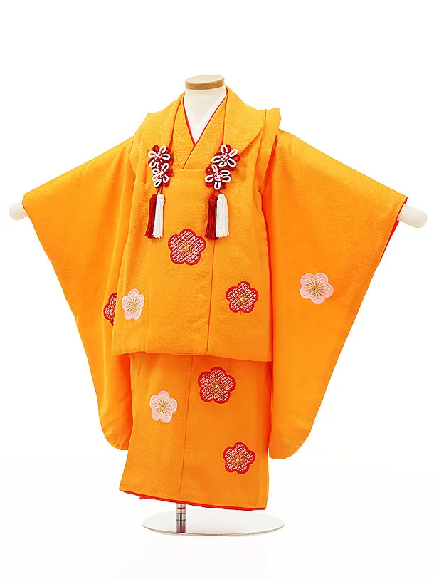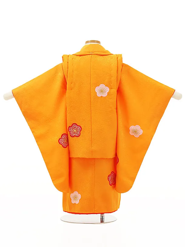 七五三レンタル(3歳女児被布)4330【正絹】オレンジ色梅